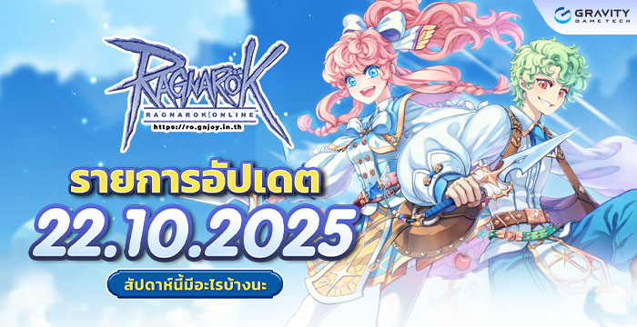 รายการอัปเดตวันที่ 22 ตุลาคม 2568 RAGNAROK STARHALL MISSION (22/10 – 17/05/2026) (Click) Grade & Refine Rate Up Event (22/10 – 12/11/2025) (Click) Limited Revival Promotion Refine Stone Box (22/10 – 12/11/2025) (Click) Spend Promotion v2 October (22 – 28/10/2025) (Click) New PVP Map Update เพิ่มแผนที่ PVP ใหม่ Map No.6 > Nightmare Toy Factory Map No.7 > …
