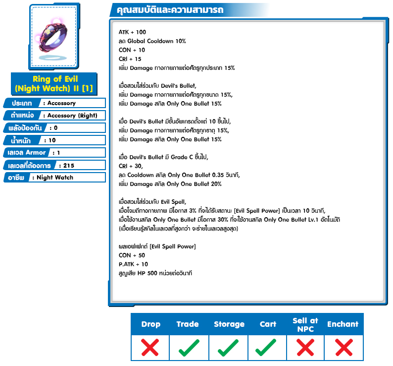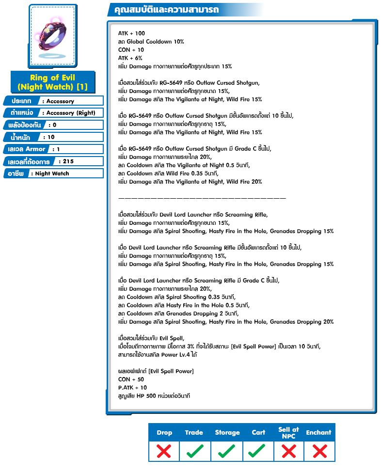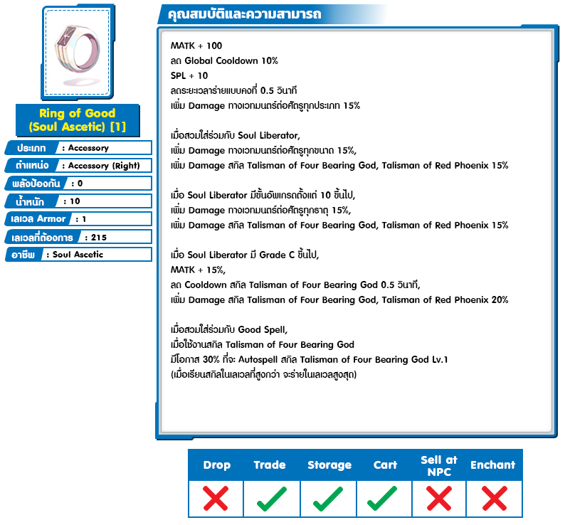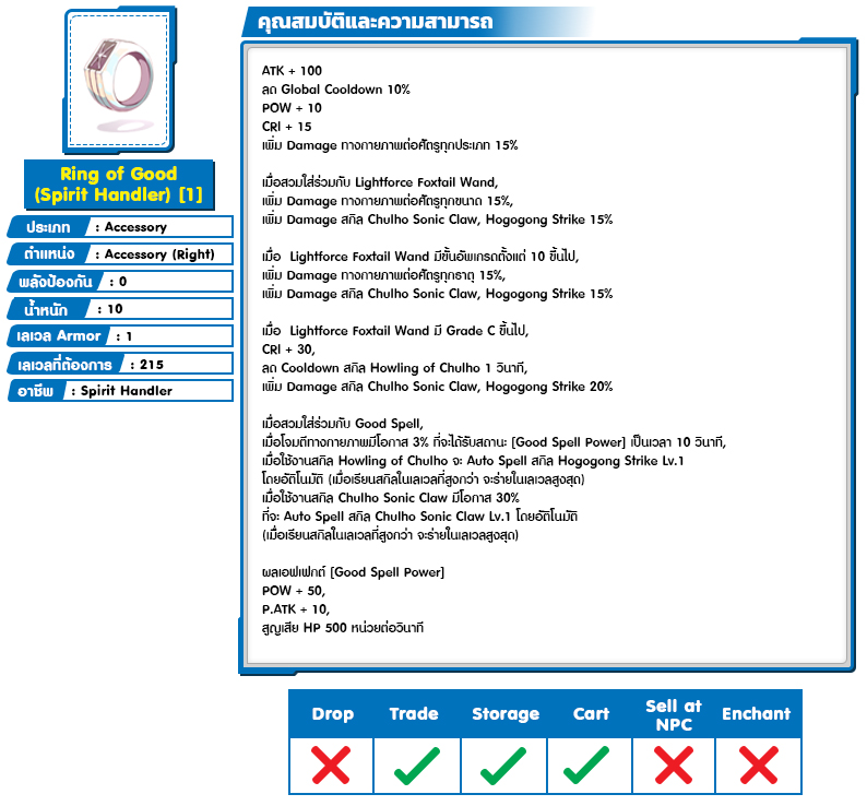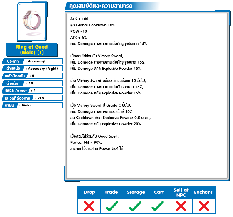 *หมายเหตุ คุณสมบัติของไอเทมต่างๆ ยึดข้อมูลจากในตัวเกมเป็นหลัก