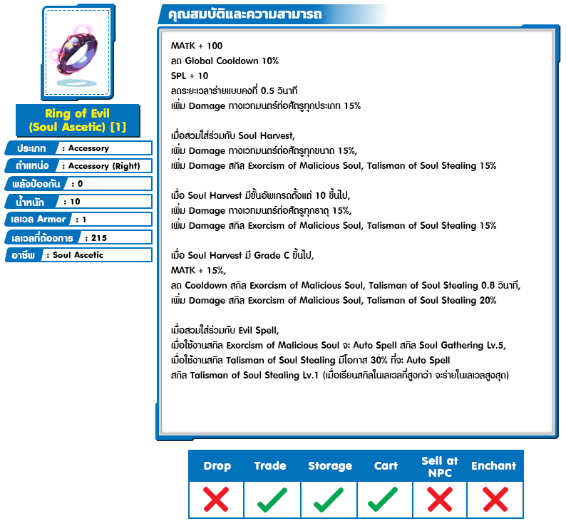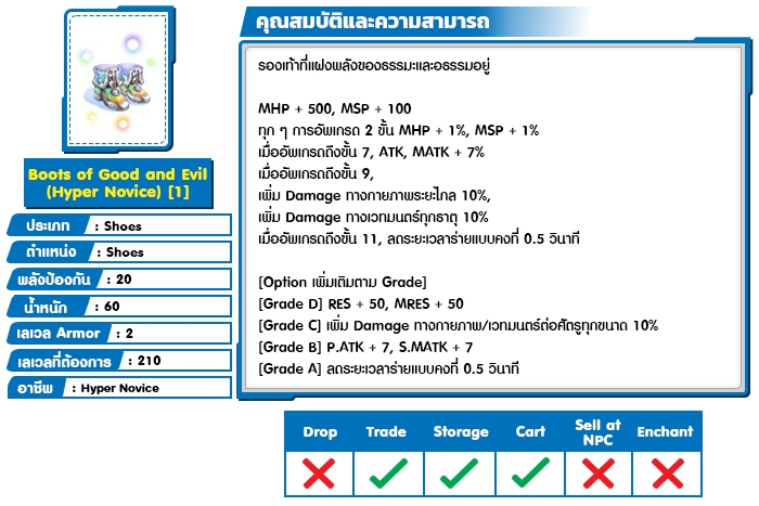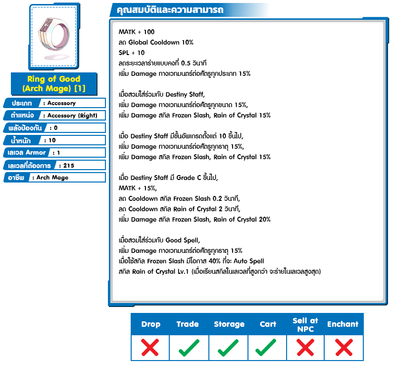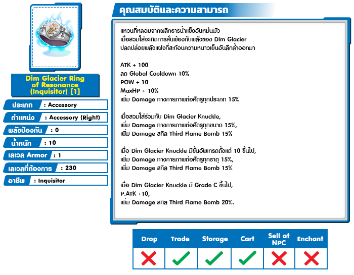 *หมายเหตุ คุณสมบัติของไอเทมต่างๆ ยึดข้อมูลจากในตัวเกมเป็นหลัก