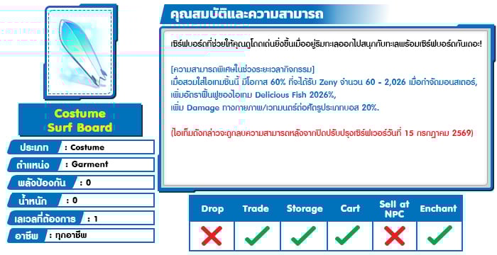 Zeny จะถูกหักออกหลังจากดำเนินการเสร็จสิ้น