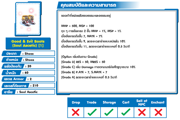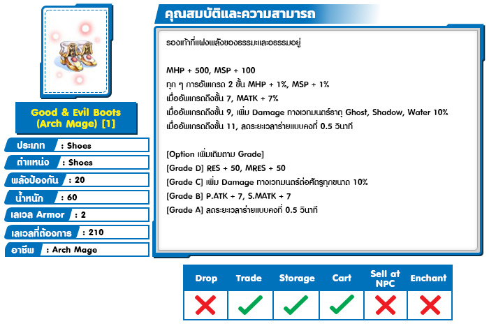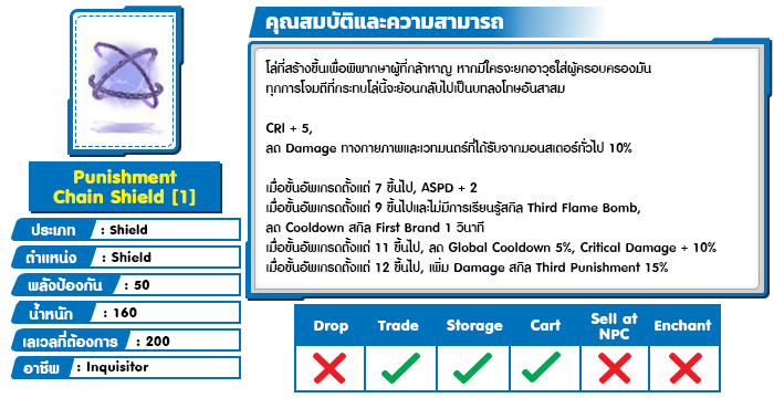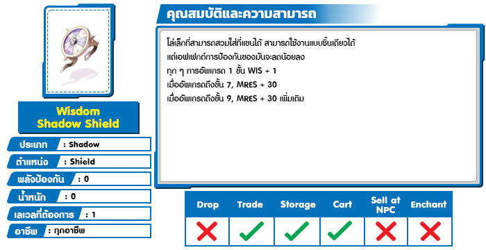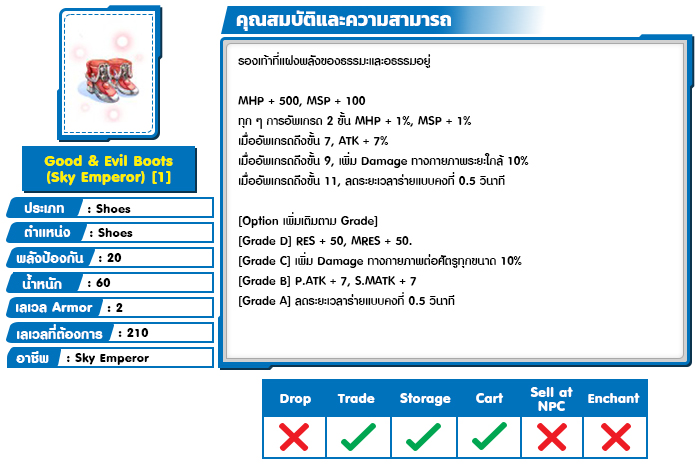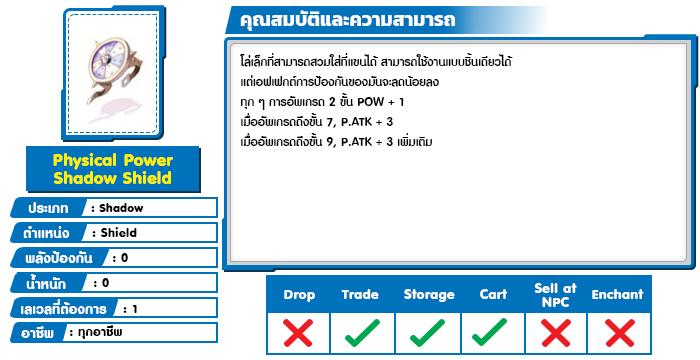 *หมายเหตุ คุณสมบัติของไอเทมต่างๆ ยึดข้อมูลจากในตัวเกมเป็นหลัก