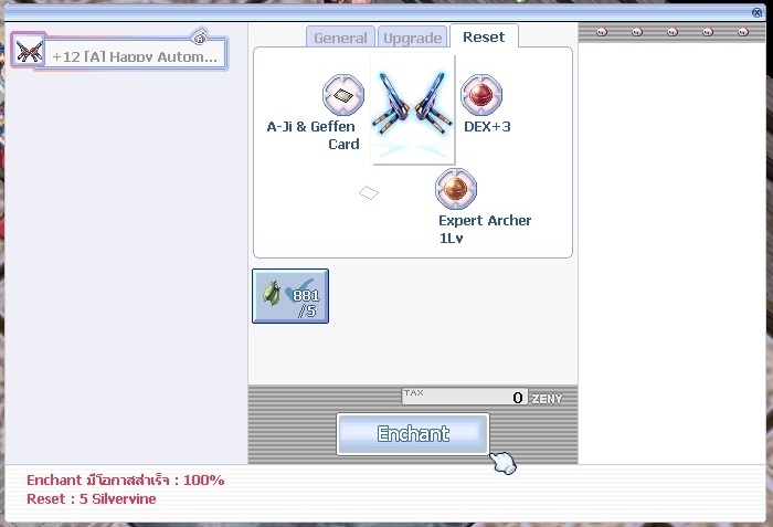Reset Enchant ใช้ Silvervine 5ea โอกาสสำเร็จ 80% (อุปกรณ์ไม่สูญหาย)
