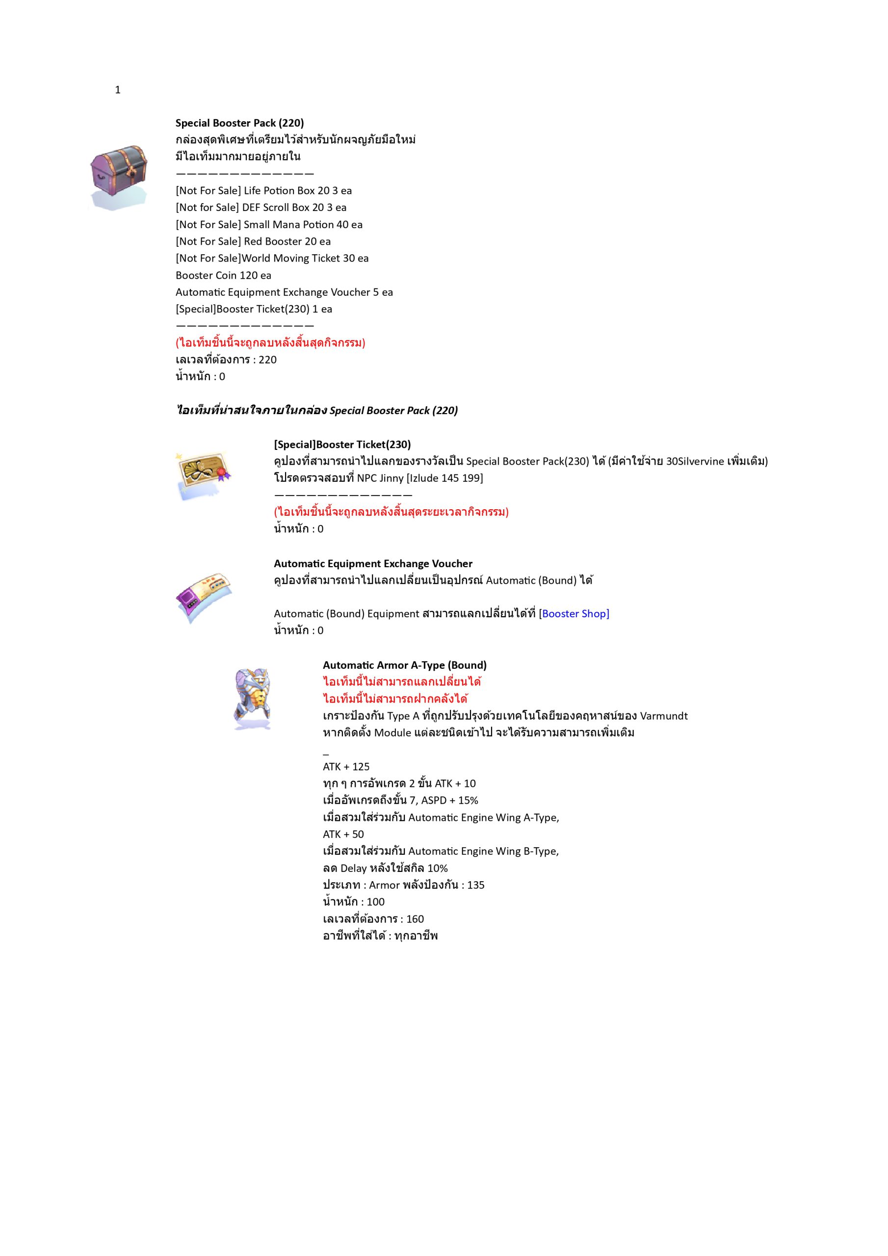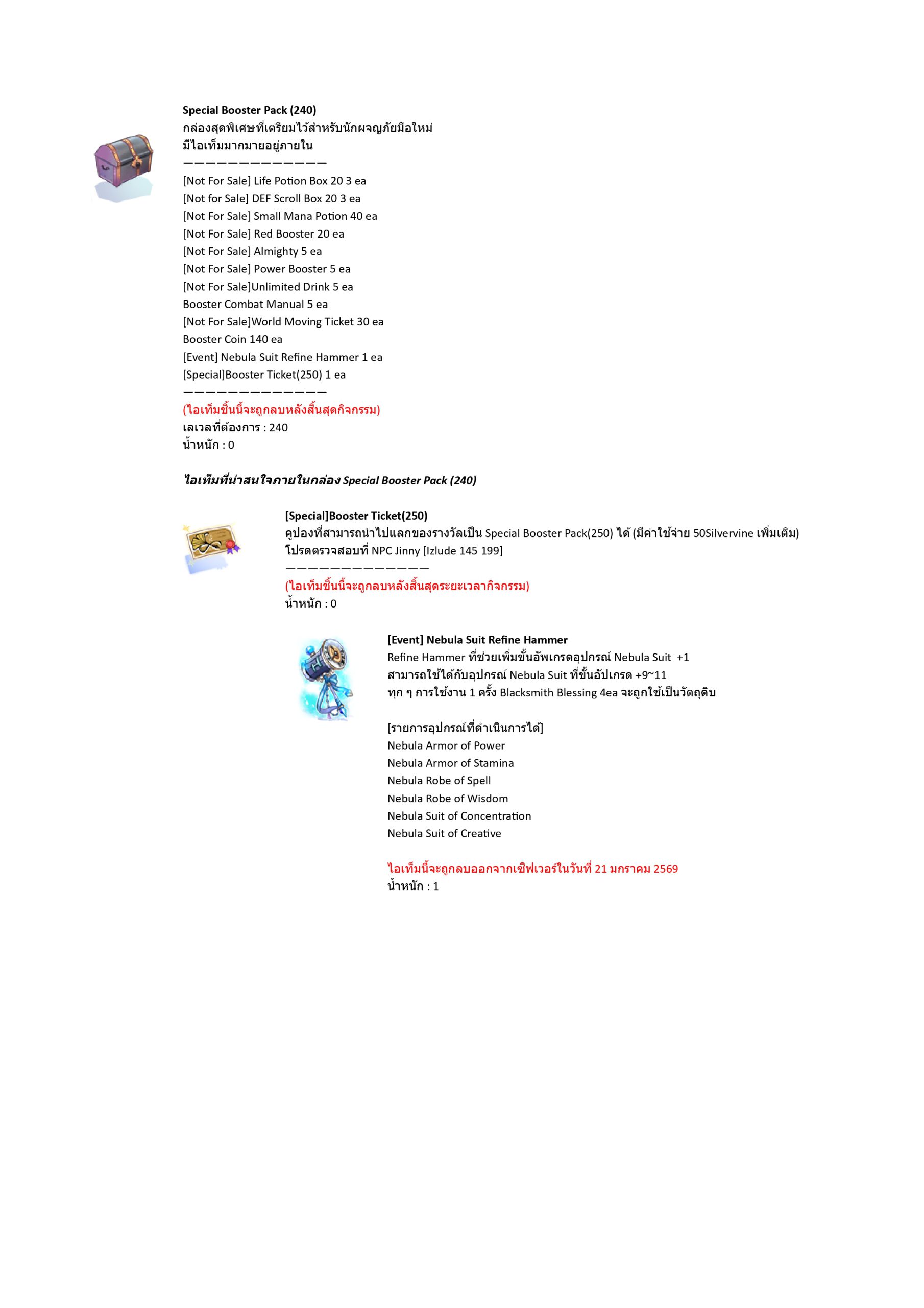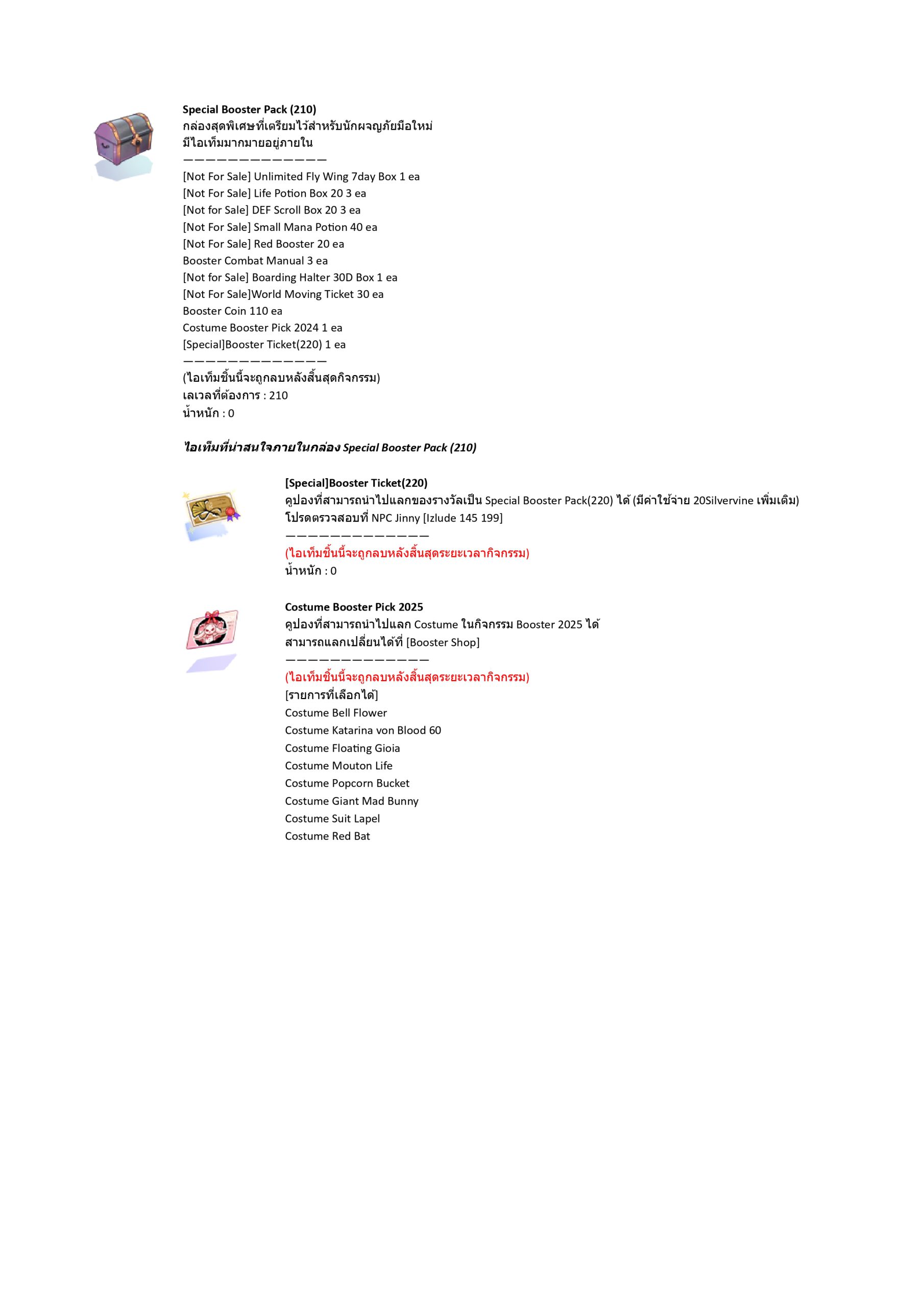 (Special) Booster Pack ได้รับจากการแลก Booster Choice Ticket กับ NPC Jinny
