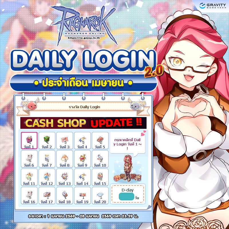 *Daily Login Card จะถูกลบออกจากเกมเพื่อรีเซ็ตรอบและปรับเปลี่ยนของรางวัล ในวันปิดปรับปรุงเซิร์ฟเวอร์วันแรกของเดือนมกราคมทุกปี