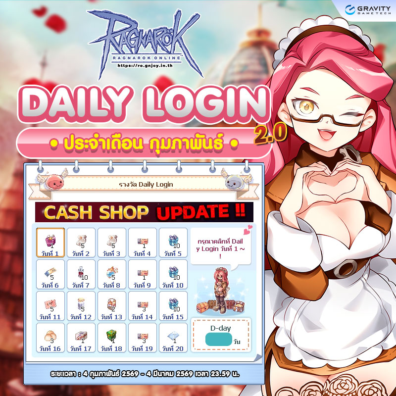 *Daily Login Card จะถูกลบออกจากเกมเพื่อรีเซ็ตรอบและปรับเปลี่ยนของรางวัล ในวันปิดปรับปรุงเซิร์ฟเวอร์วันแรกของเดือนมกราคมทุกปี