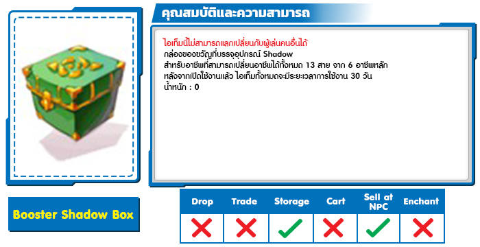 เมื่อเปิดออกจะได้รับ Booster Shadow ทุกอาชีพรวมคลาสเสริม (เช่า 30 วัน)
