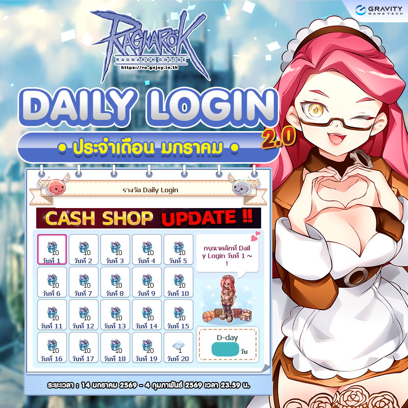 *Daily Login Card จะถูกลบออกจากเกมเพื่อรีเซ็ตรอบและปรับเปลี่ยนของรางวัล ในวันปิดปรับปรุงเซิร์ฟเวอร์วันแรกของเดือนมกราคมทุกปี