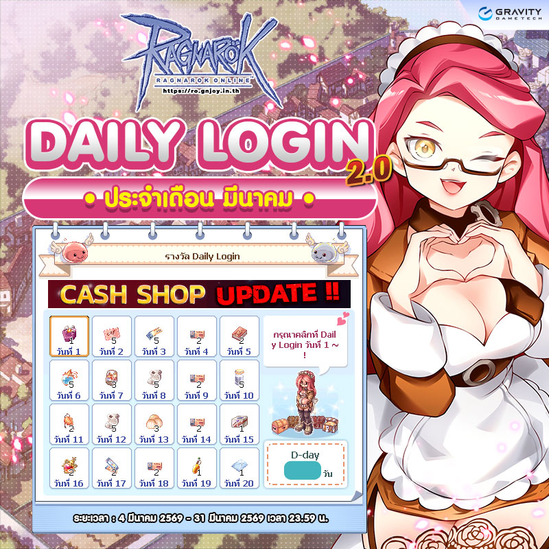*Daily Login Card จะถูกลบออกจากเกมเพื่อรีเซ็ตรอบและปรับเปลี่ยนของรางวัล ในวันปิดปรับปรุงเซิร์ฟเวอร์วันแรกของเดือนมกราคมทุกปี