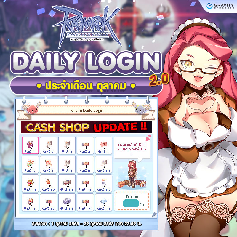*Daily Login Card จะถูกลบออกจากเกมเพื่อรีเซ็ตรอบและปรับเปลี่ยนของรางวัล ในวันปิดปรับปรุงเซิร์ฟเวอร์วันแรกของเดือนมกราคมทุกปี