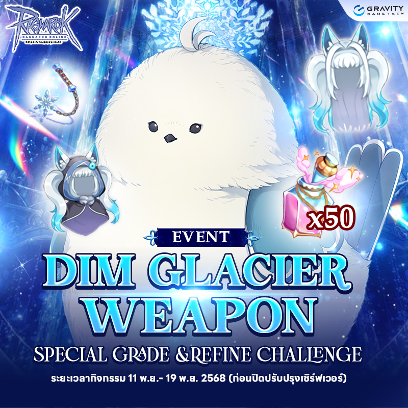 1. ผู้เล่นต้องทำการ Grade และตีบวก (Refine) Dim Glacier Weapon Serie ” ที่เปิดตัวหลังอัพเดทวันที่ 5 พฤศจิกายน 2568 (หลังปิดปรับปรุงเซิฟเวอร์) ”