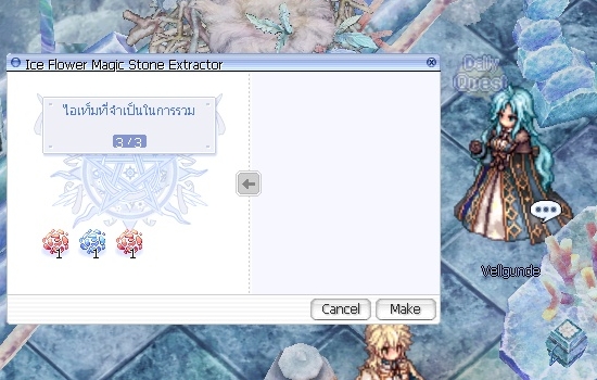 “สกัด Ice Flower Spell” นำ Ice Flower Magic Stone ชนิดใดๆ 3ea มาสุ่มเปลี่ยนเป็น Ice Flower Magic Stone ชิ้นอื่นๆ