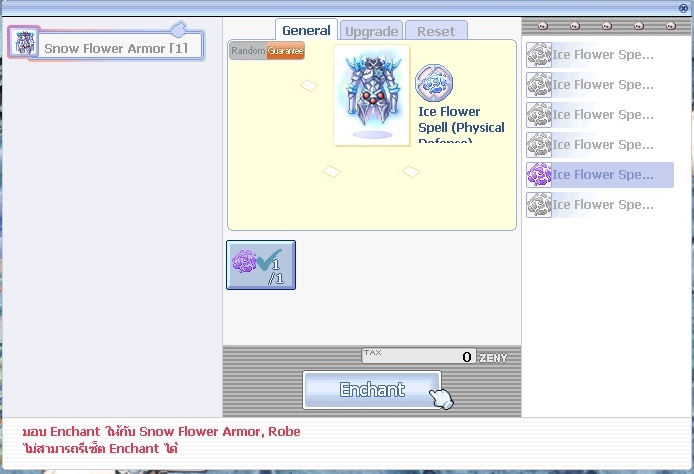 “Enchant Snow Flower” ใช้ Ice Flower Magic Stone ที่มีอยู่ เป็นวัตถุดิบในการมอบ Enchant ให้แก่อุปกรณ์ SnowFlower