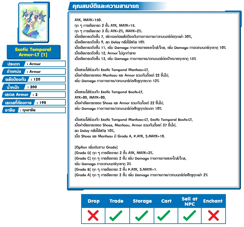 คำเตือน Exotic Temporal Armor-LT ที่มี Random Option อยู่จะไม่สามารถนำมา Enchant ได้ กรุณาติดต่อทีมงานผ่านช่องทาง Freshdesk Ticket (Click)