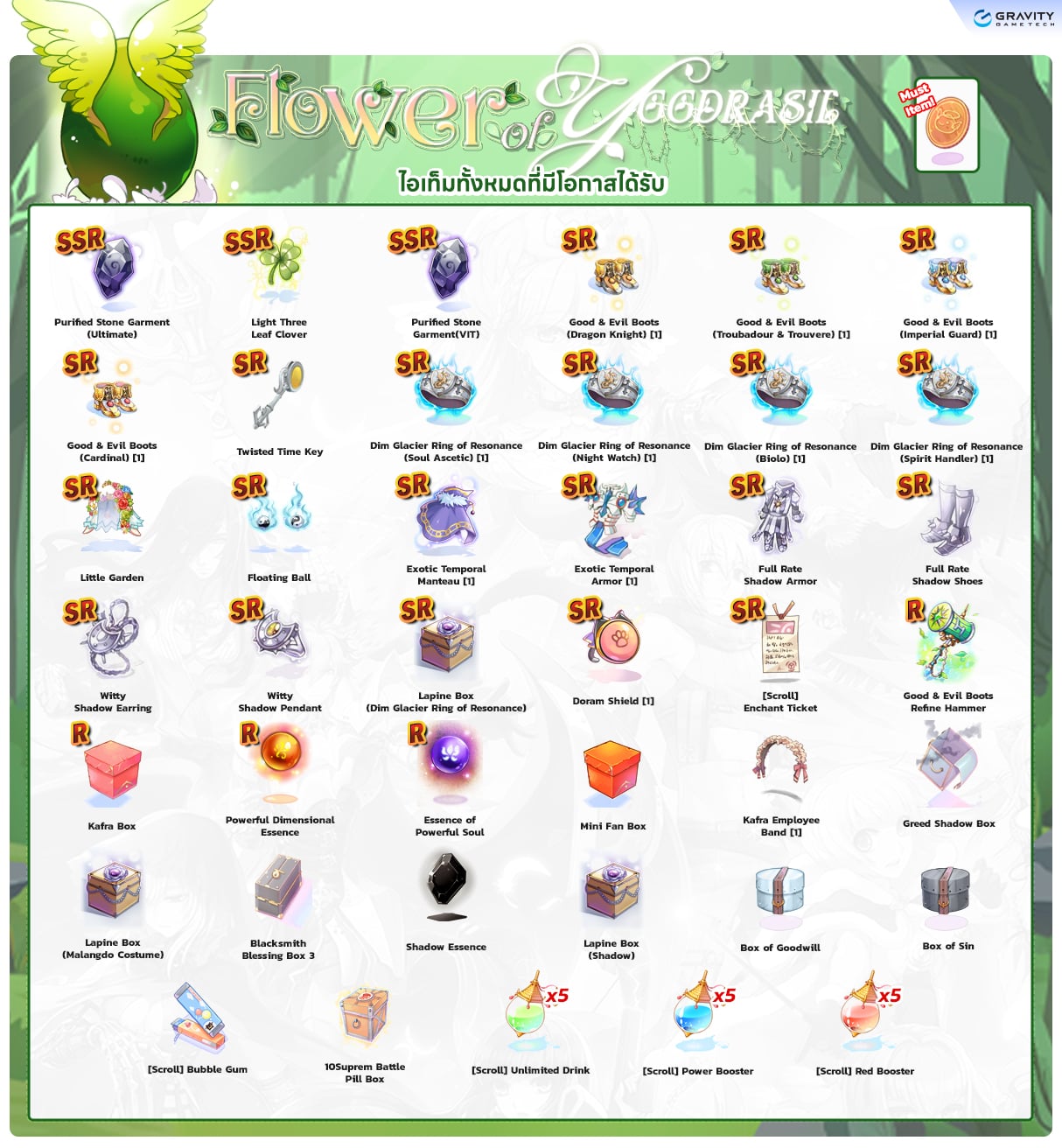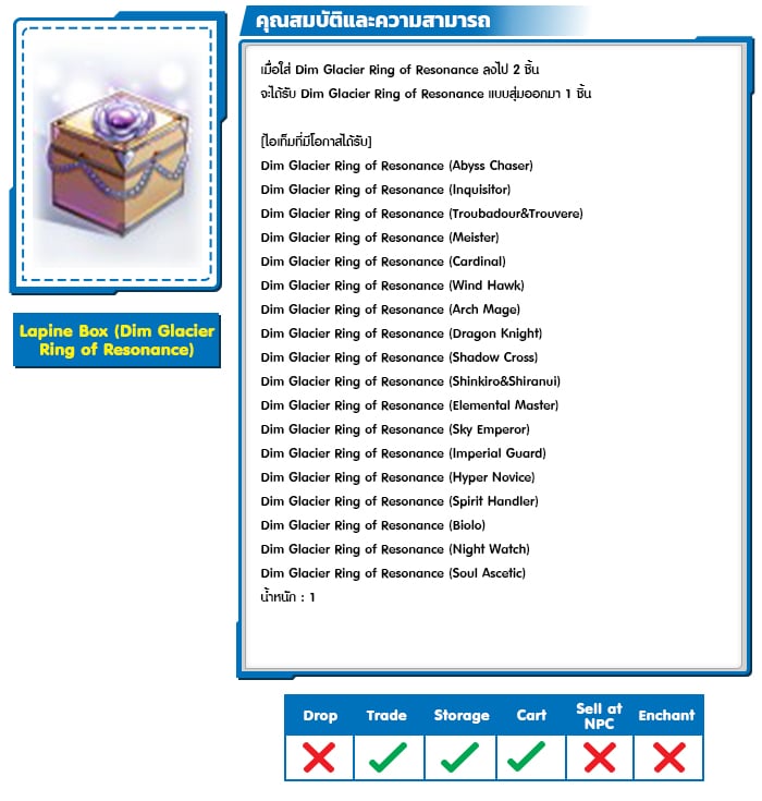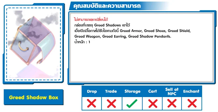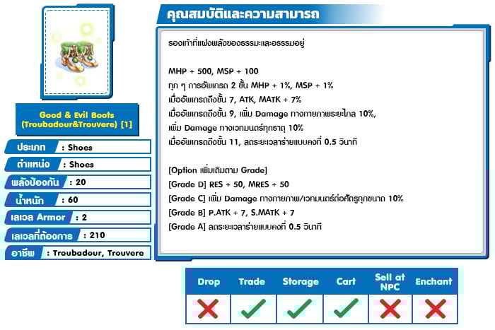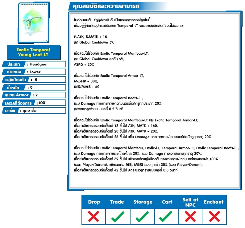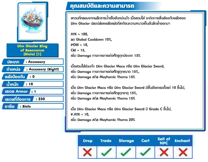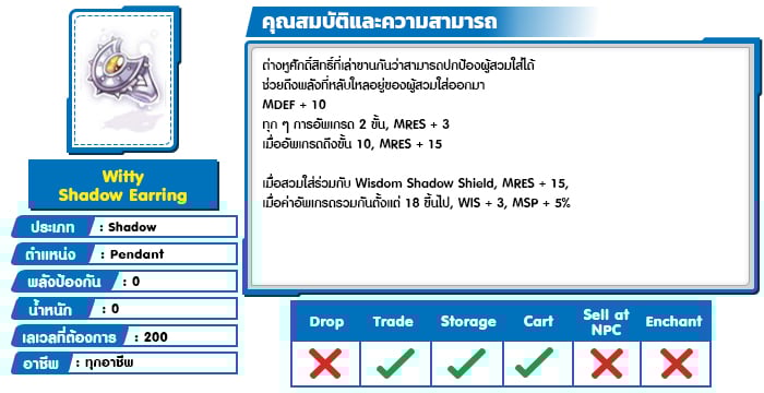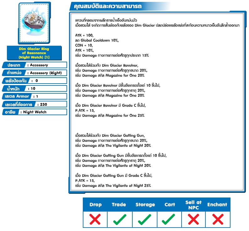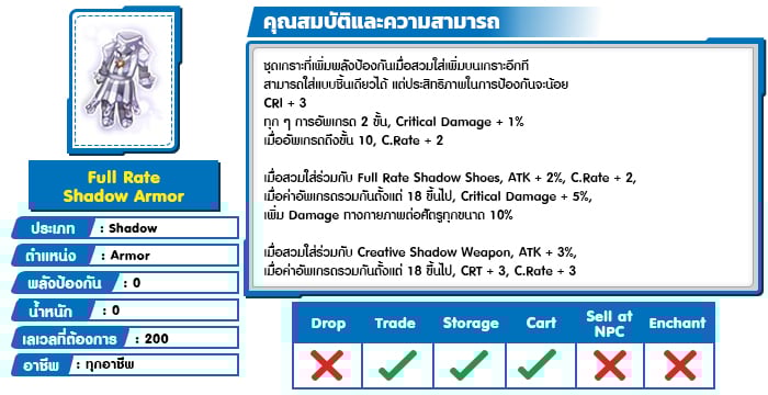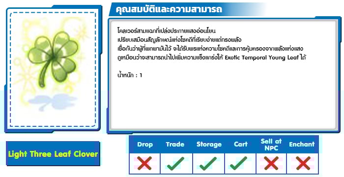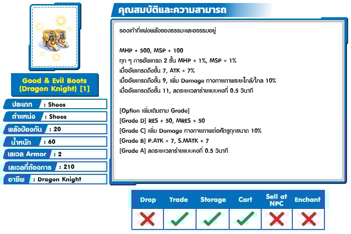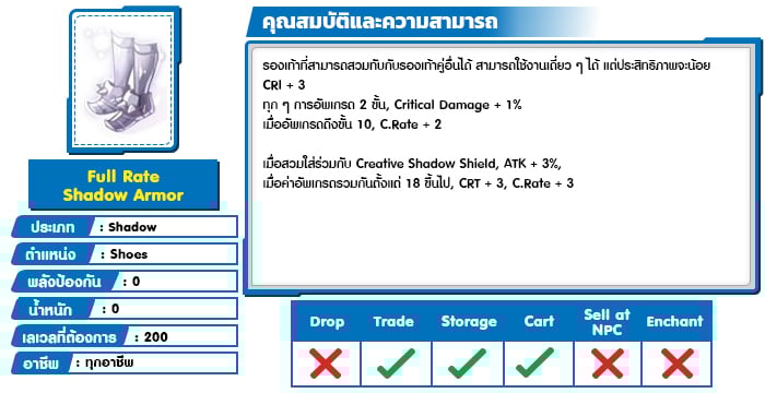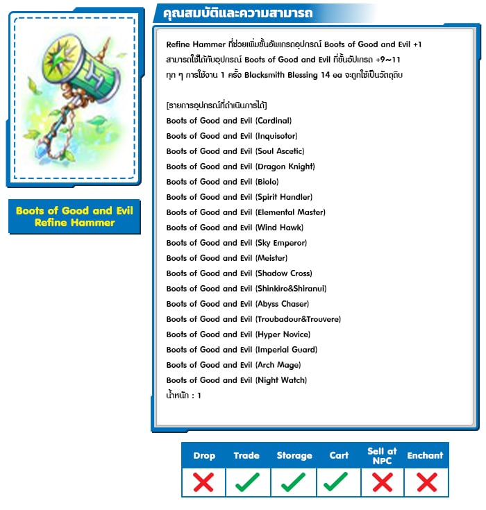 *หมายเหตุ คุณสมบัติของไอเทมต่างๆ ยึดข้อมูลจากในตัวเกมเป็นหลัก