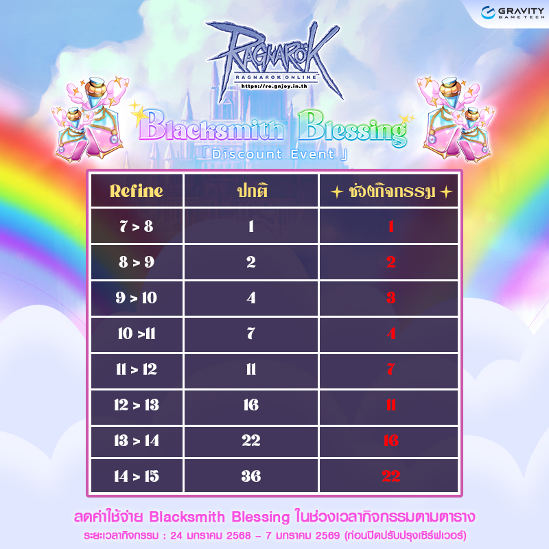 2. ลดจำนวน Blacksmith Blessing สำหรับการตีบวกไอเทมภายในระยะเวลากิจกรรม