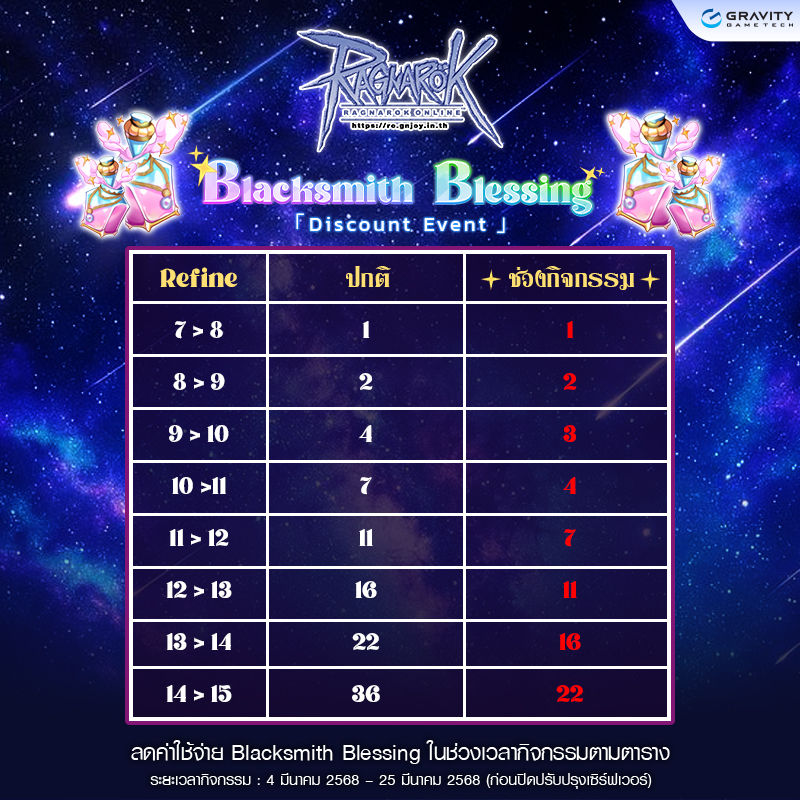 2. ลดจำนวน Blacksmith Blessing สำหรับการตีบวกไอเทมภายในระยะเวลากิจกรรม