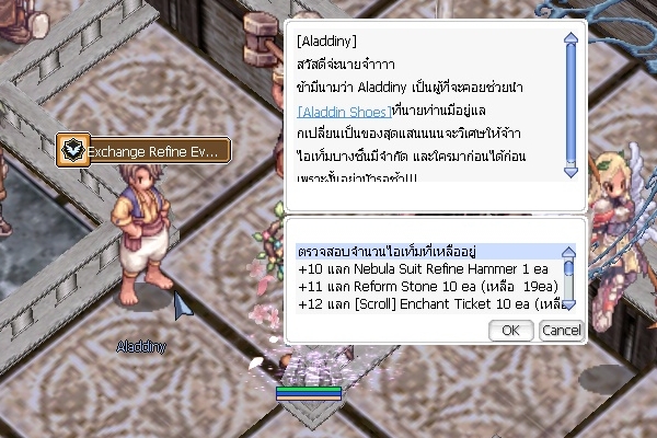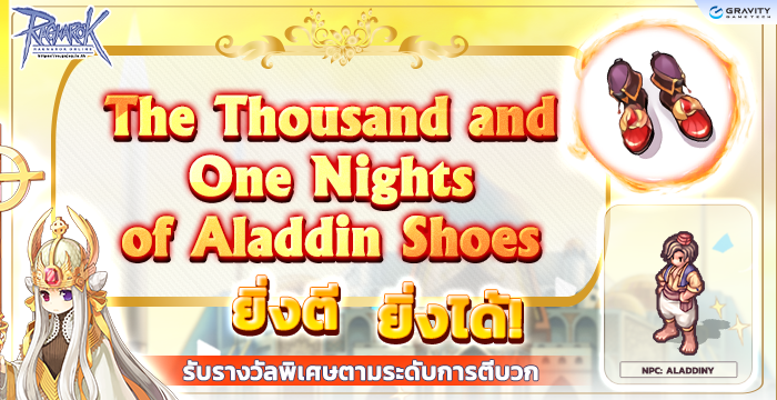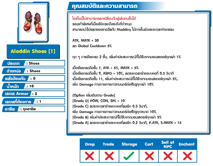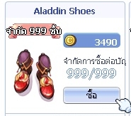 โปรดระวัง เมื่อกดแลกเปลี่ยน Aladdin Shoes ที่สวมใส่อยู่จะถูกลบออกทันทีและได้รับไอเทมที่เลือกเข้ามาแทน