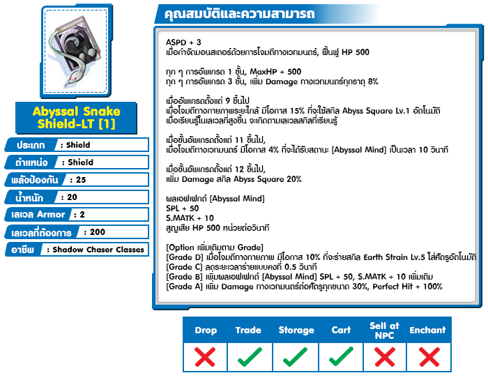 Grade A – 16 ATK (โบนัส WeaponATK เพิ่มขึ้น 100%)