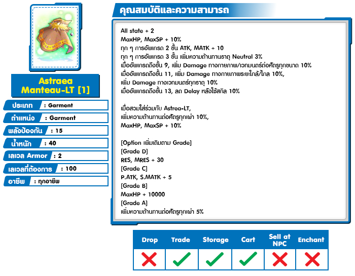 [ความสามารถเพิ่มเติมตาม Grade] นั้นจะได้รับค่าคุณสมบัติทั้งหมดไปจนถึงระดับ Grade สูงสุดที่ทำได้ ณ ขณะนั้น