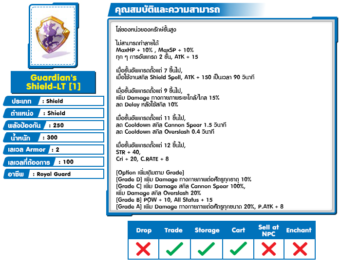 เงื่อนไข 1.เฉพาะอาวุธเลเวล 5 และชุดเกราะเลวล 2 เท่านั้นที่สามารถ Grade ได้