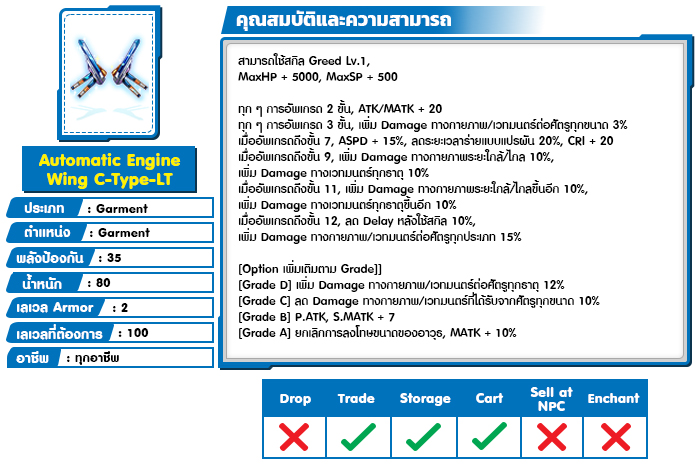 Grade C – 10.4 ATK (โบนัส WeaponATK เพิ่มขึ้น 30%)