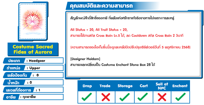 สามารถเปิดรับได้ในวันที่ 8 ตุลาคม 2568 (หลังปิดปรับปรุงเซิร์ฟเวอร์) ~ 15 ตุลาคม 2568 (ก่อนปิดปรับปรุงเซิร์ฟเวอร์)