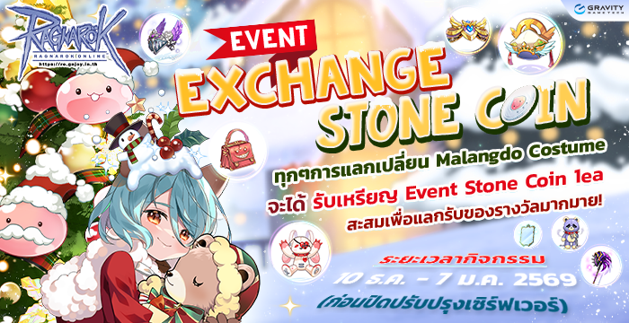 Event Exchange Stone Coin ทุกๆการสุ่ม Malangdo Costume จะได้รับ Event Stone Coin 1ea แลกของรางวัลได้มากมาย