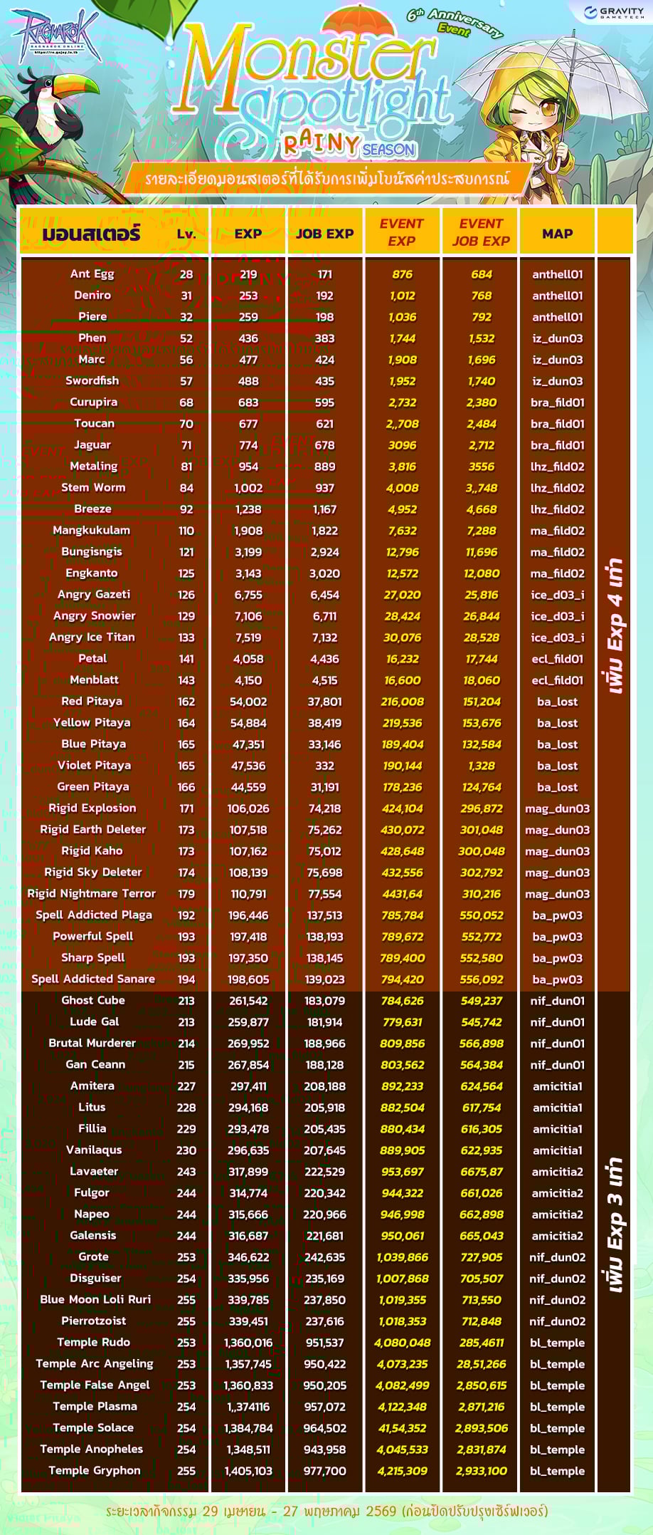 กิจกรรม เพิ่มค่าประสบการ์ที่ได้รับจากมอนสเตอร์ที่กำหนด