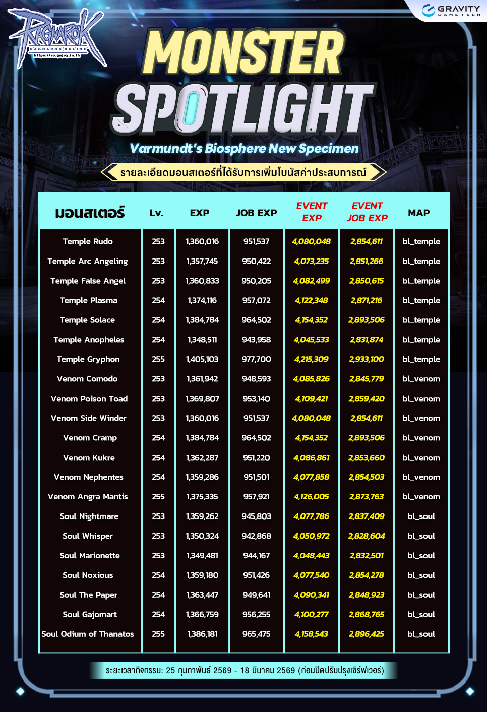กิจกรรม เพิ่มค่าประสบการ์ที่ได้รับจากมอนสเตอร์ที่กำหนด