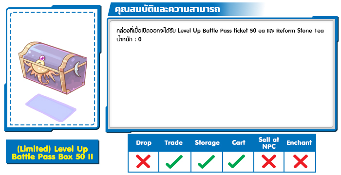 (Limited) Level Up Battle Pass Box 50 II ราคา 14,000 Cash
