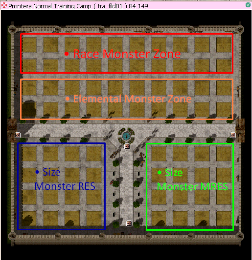 -. Zone สีเขียวจะเป็น Monster Dummy Human Player, Doram Player, ขนาดต่างๆ และมี Monster Dummy ในโซนนี้จะมีค่า MRES 1000 – 5000 เพิ่มเติม