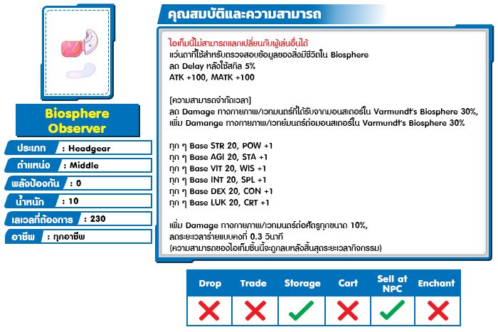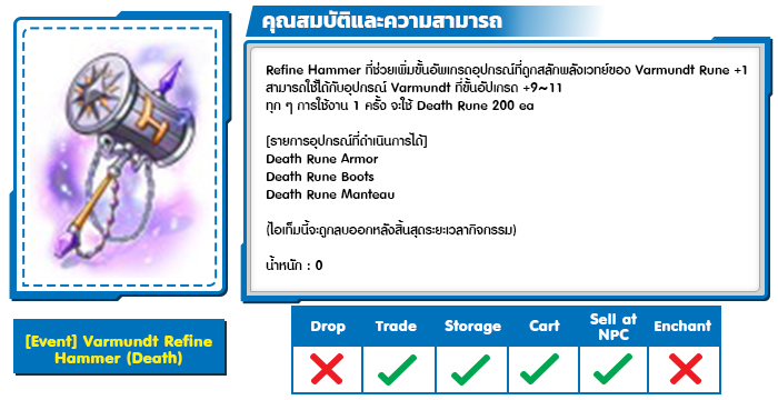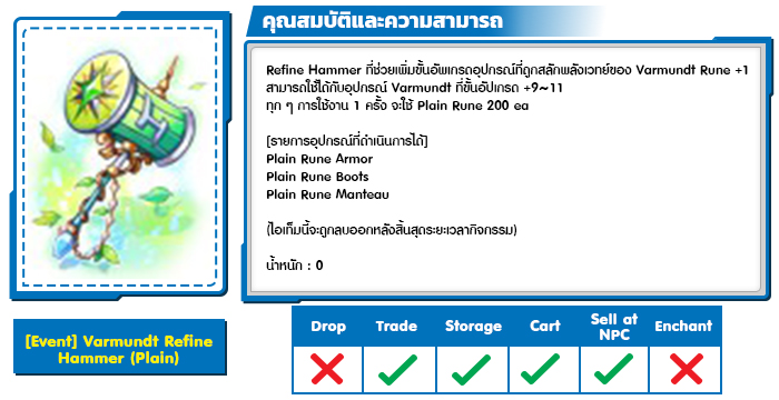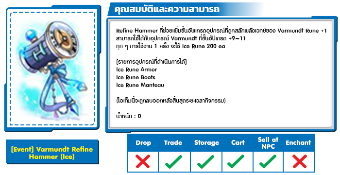 - อุปกรณ์ต้องมีการ Enchant Slot [2] มาก่อน