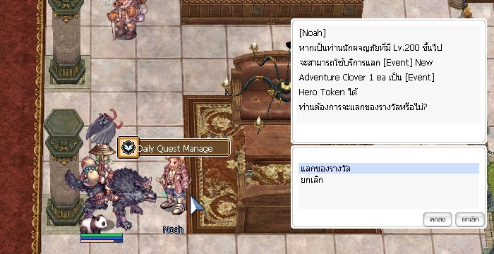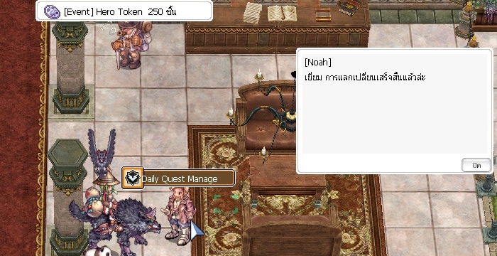 Noah จะแสดงความยินดีและลบ [Event] New Adventure Clover 1ea จากในตัวละครออกไป พร้อมมอบ [Event] Hero Token 250ea เป็นการแลกเปลี่ยน