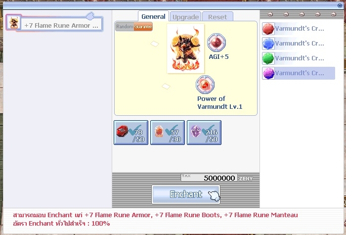 เช่น เลือก Varmundt’s Crystal (Flame) ใช้ Flame Rune, เลือก Varmundt’s Crystal (Ice) ใช้ Ice Rune เป็นต้น