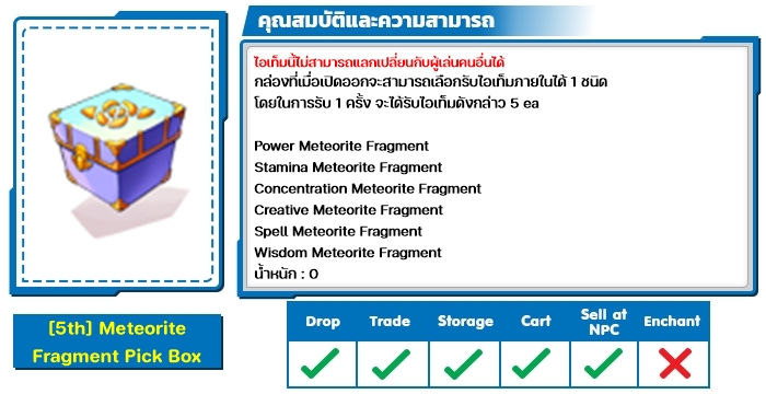 เงื่อนไข : ไม่มีข้อจำกัดเลเวล/เควส