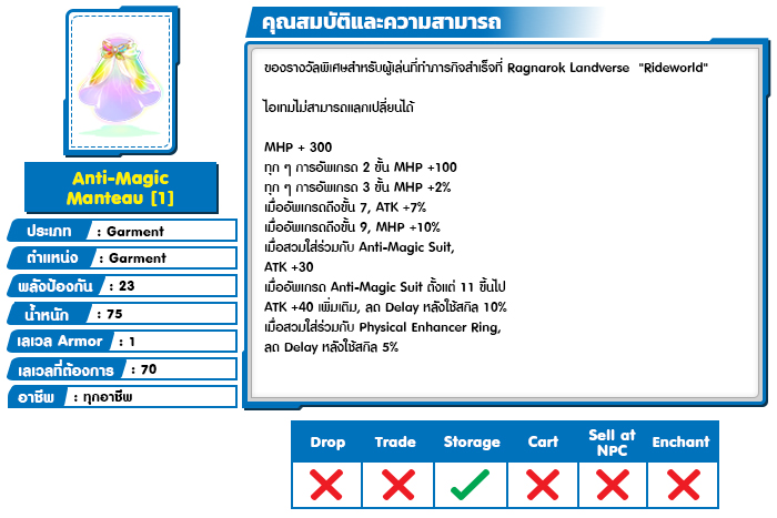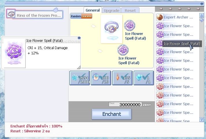 การดำเนินการ Enchant จำเป็นจะต้องเริ่มจาก Slot [4] > [3] > [2] ตามลำดับเท่านั้น โดยมีโอกาสสำเร็จ 100%