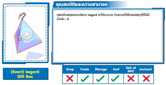 ไอเทมที่มีโอกาสได้รับจาก [Event] Issgard Gift Box