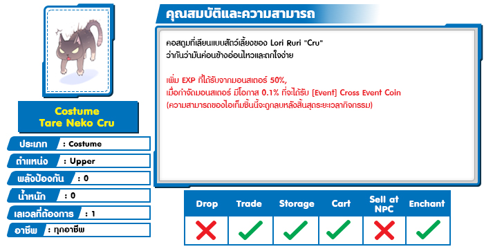 เมื่อพูดคุยหัวข้อนี้ จะสามารถเลือกแลกรับของรางวัลกิจกรรมได้ โดยจะต้องใช้ [Event] Cross Event Coin ในการแลกเปลี่ยน ร่วมกับไอเทมอื่นๆเพิ่มเติม ดังข้อมูลต่อไปนี้