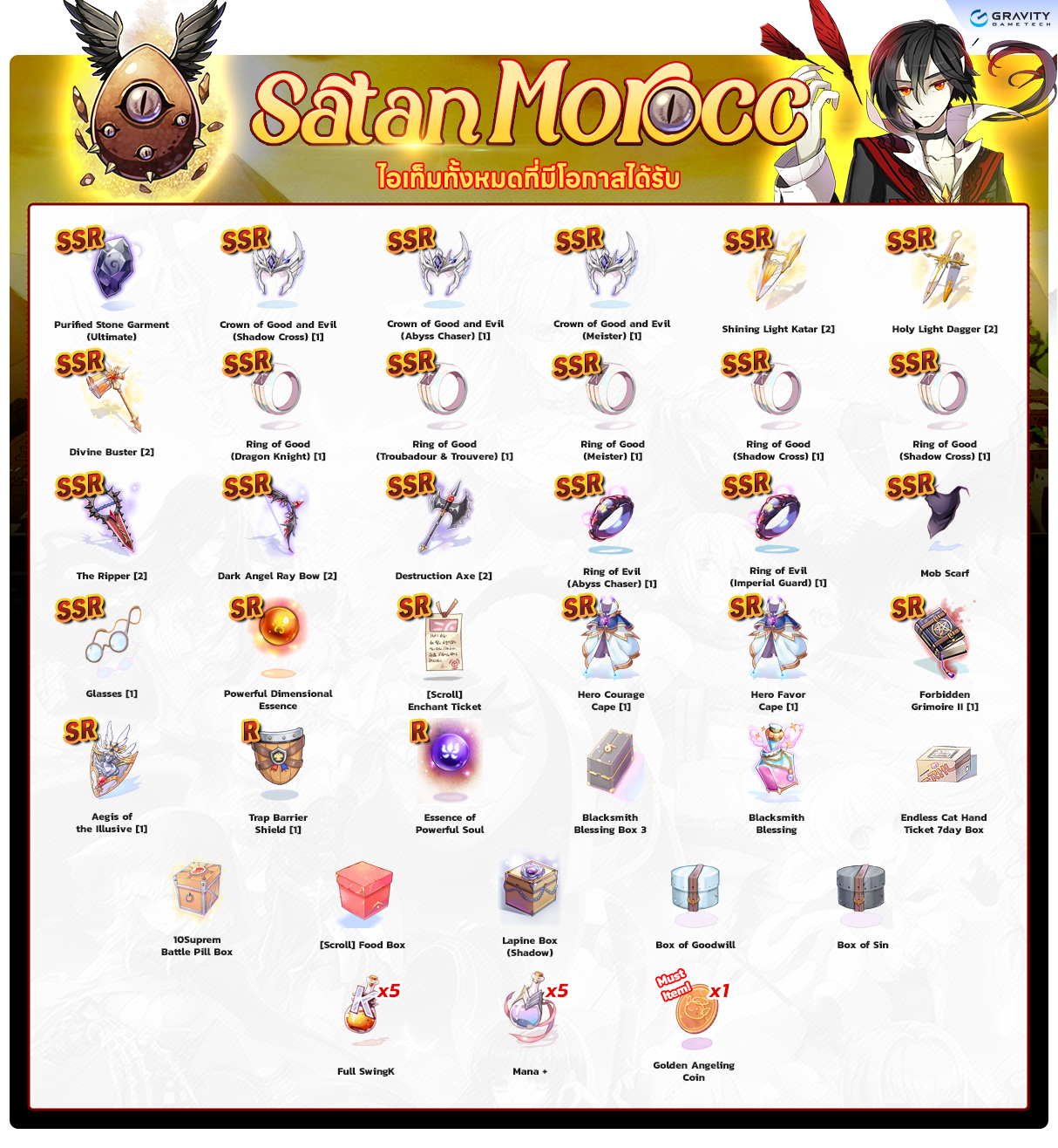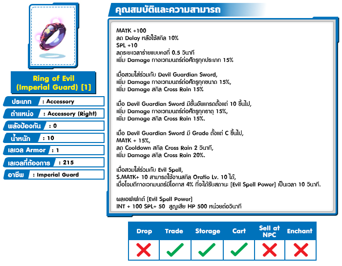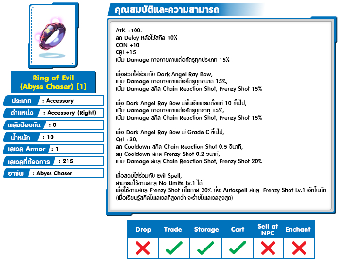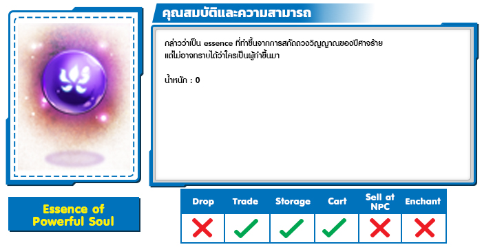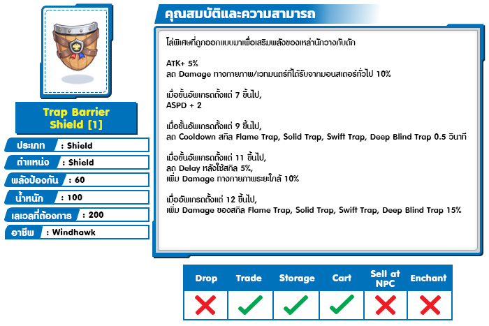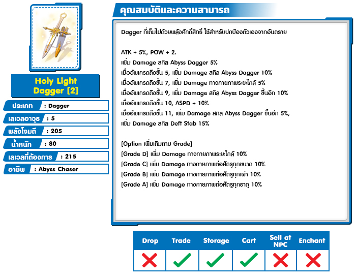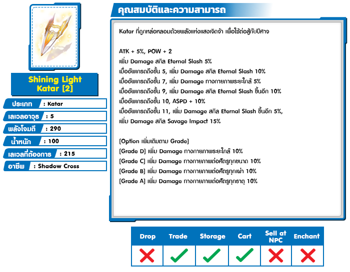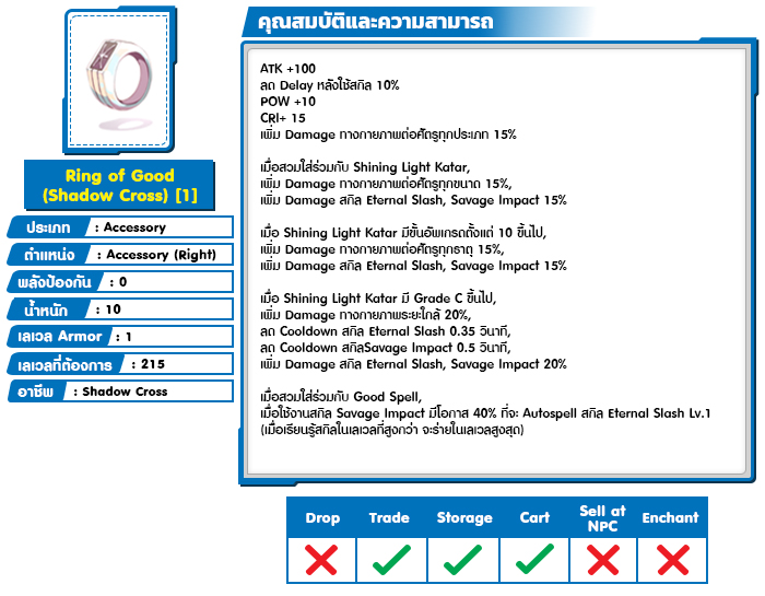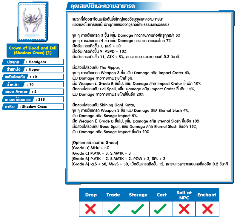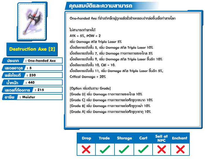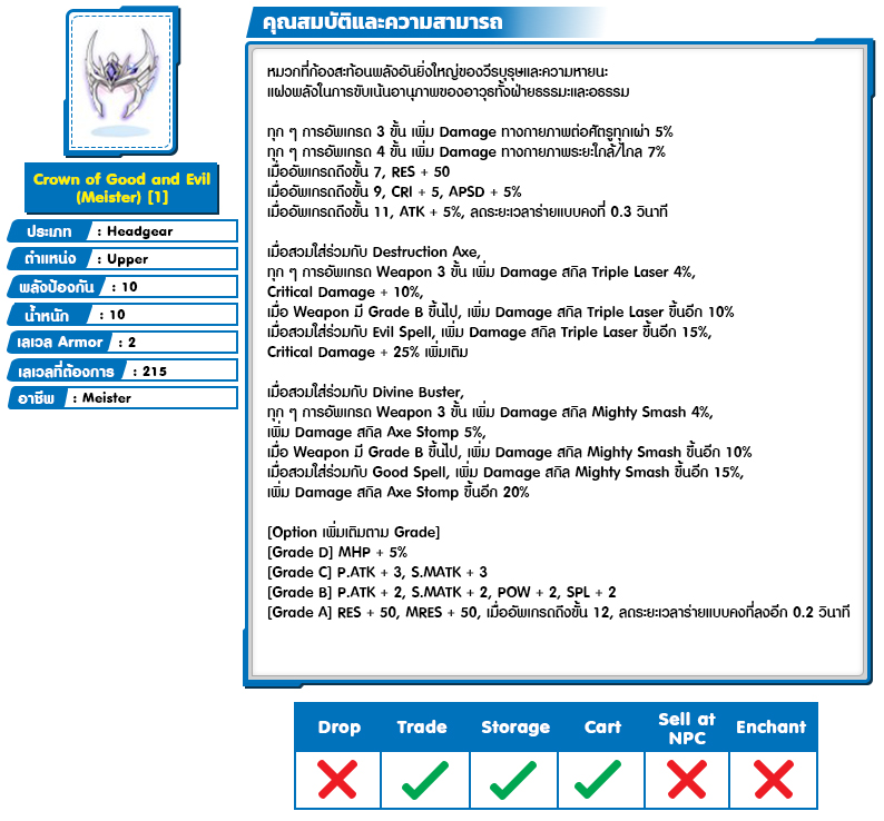 *หมายเหตุ คุณสมบัติของไอเทมต่างๆ ยึดข้อมูลจากในตัวเกมเป็นหลัก