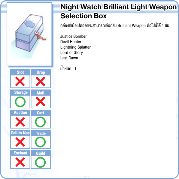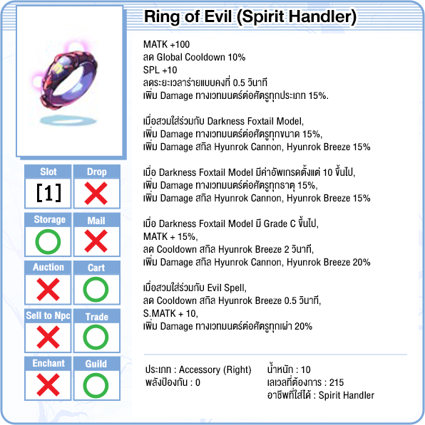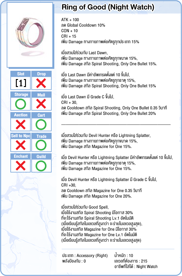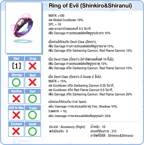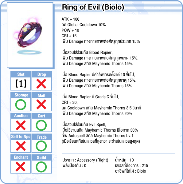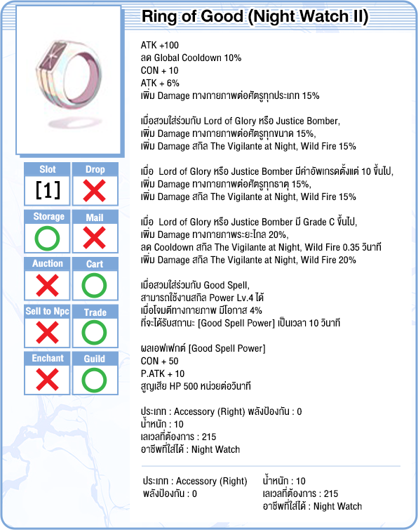 *หมายเหตุ คุณสมบัติของไอเทมต่างๆ ยึดข้อมูลจากในตัวเกมเป็นหลัก