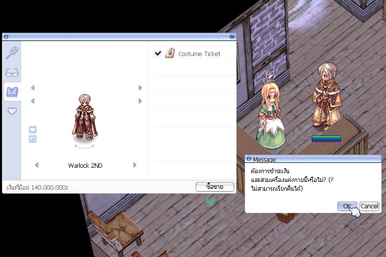 สามารถใช้งาน Costume Ticket 1ea สำหรับเปลี่ยนแปลงรูปลักษณ์ของตัวละครให้เป็นไปตามแบบที่ต้องการ