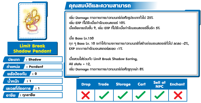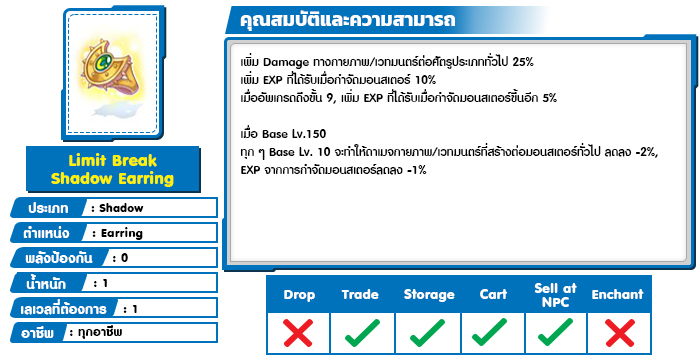 ตัวอย่าง Stat ที่ได้รับจากไอเทมเมื่อตัวละครที่สวมใส่มี Base Level ต่ำกว่า 150