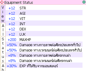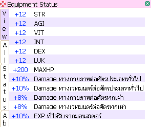 ตัวอย่าง Stat ที่ได้รับจากไอเทมเมื่อตัวละครที่สวมใส่มี Base Level 250
