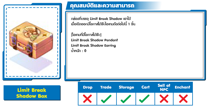 - เติมเงินสะสมครบ 10,000 บาท รับ Limit Break Shadow Box จำนวน 1ea (จำกัดสิทธิ์ 1 ครั้ง / 1 RO ID)
