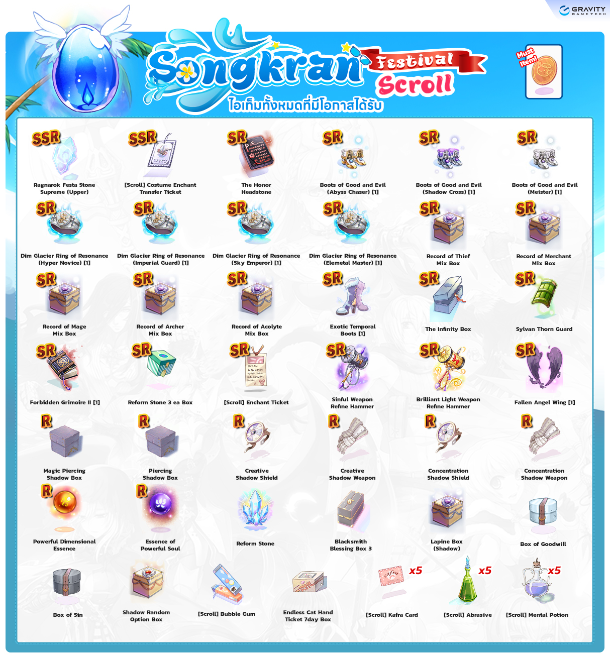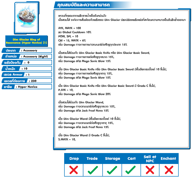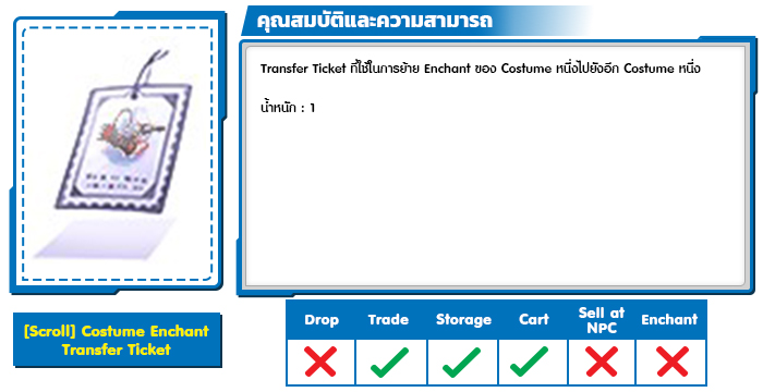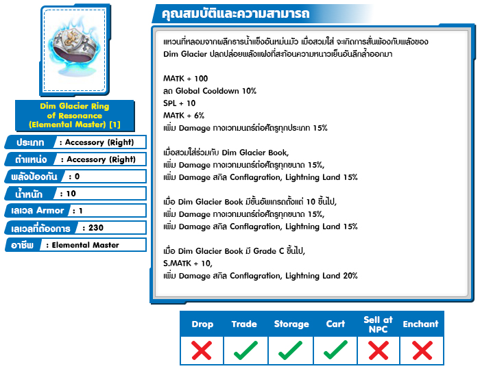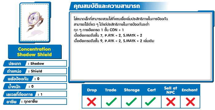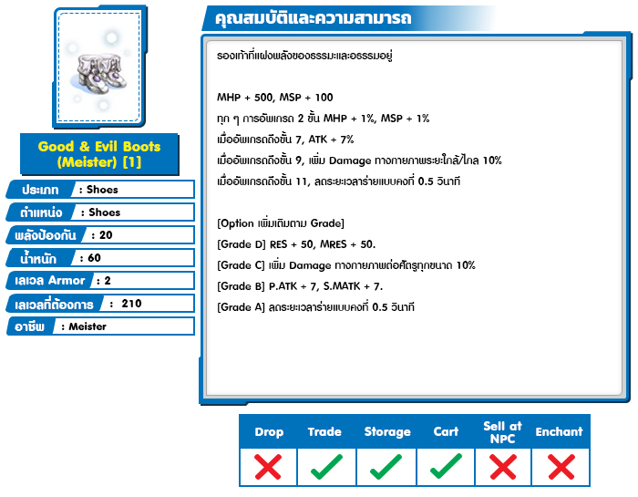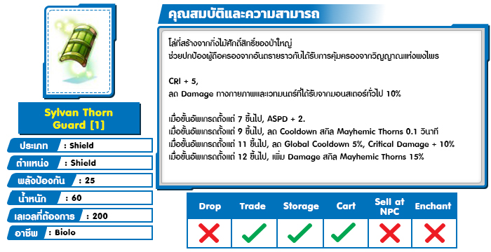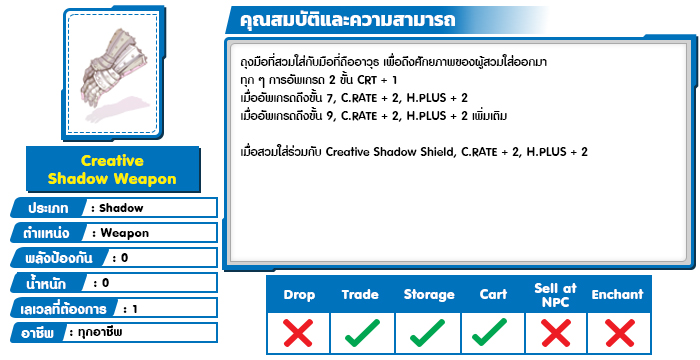 *หมายเหตุ คุณสมบัติของไอเทมต่างๆ ยึดข้อมูลจากในตัวเกมเป็นหลัก