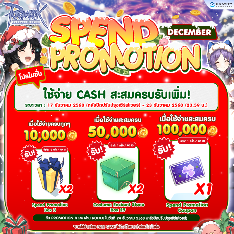 ** Item Spend Promotion Coupon จะถูกลบทุกๆปิดปรับปรุงเซิฟเวอร์ประจำสัปดาห์ของเดือนถัดไป