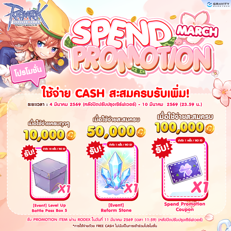 ** Item Spend Promotion Coupon จะถูกลบทุกๆปิดปรับปรุงเซิฟเวอร์ประจำสัปดาห์ของเดือนถัดไป