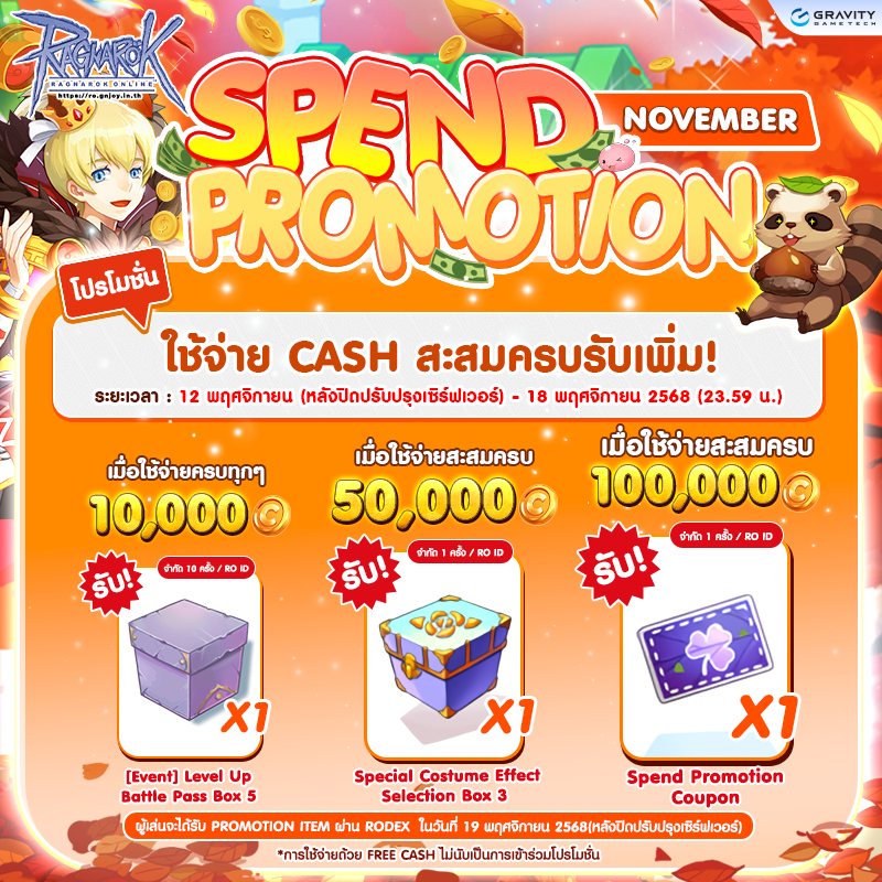 ** Item Spend Promotion Coupon จะถูกลบทุกๆปิดปรับปรุงเซิฟเวอร์ประจำสัปดาห์ของเดือนถัดไป