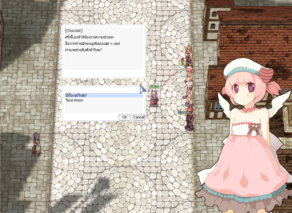 เมื่อพูดคุยกับ Chocolat จะได้รับ Chocolate for Delivery 5ea ให้นำไปจัดส่งกับ NPC ทั้ง 5 คน