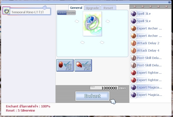 Reset Enchant ใช้ Silvervine 5ea โอกาสสำเร็จ 80% (อุปกรณ์ไม่สูญหาย)